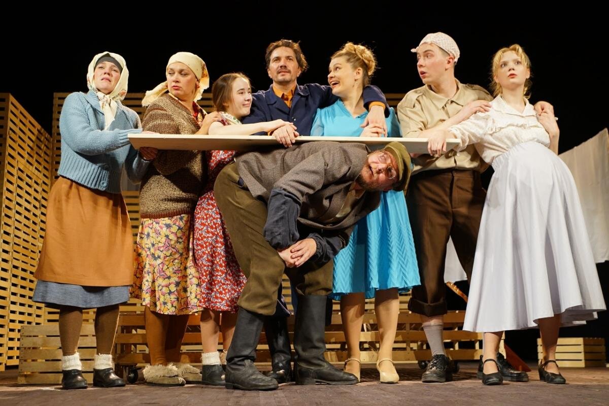 По словам режиссера-постановщика Лилии Ахметзяновой (выпускница ГИТИСа, мастерская Михаила Борисова), спектакль создан в рамках федеральной программы «Культура малой Родины» менее чем за три месяца. Что не может не удивлять: постановка видится очень зрелой и максимально «выношенной». Девять актеров создали 72 образа, среди которых нет ни одного проходного персонажа. Действие спектакля развивается максимально динамично, наполнено прекрасными песнями, одна из них – русская народная «Земляничка-ягодка», припев из которой «Вот, вот, вот я, вот и милая моя» стал рефреном. Эпоха в спектакле отражена максимально и богата всякими вкусными деталями: газеты, аутентичные платья, рубашки, треники, сандалии, мяч, железный самокат (дедушка нынешних электрических), вплоть до меховой шапки «завотделом магазина», октябрятского значка и нижнего белья!