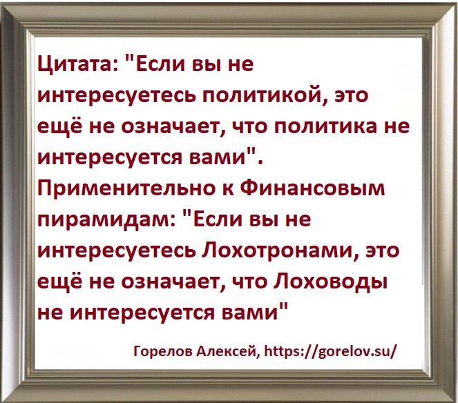 Мысли вслух для сетевиков и не только: https://gorelov.su/umnye-mysli/ Повышаем свою финансовую грамотность: https://gorelov.su/raznovidnosti-finansovyih-piramid/