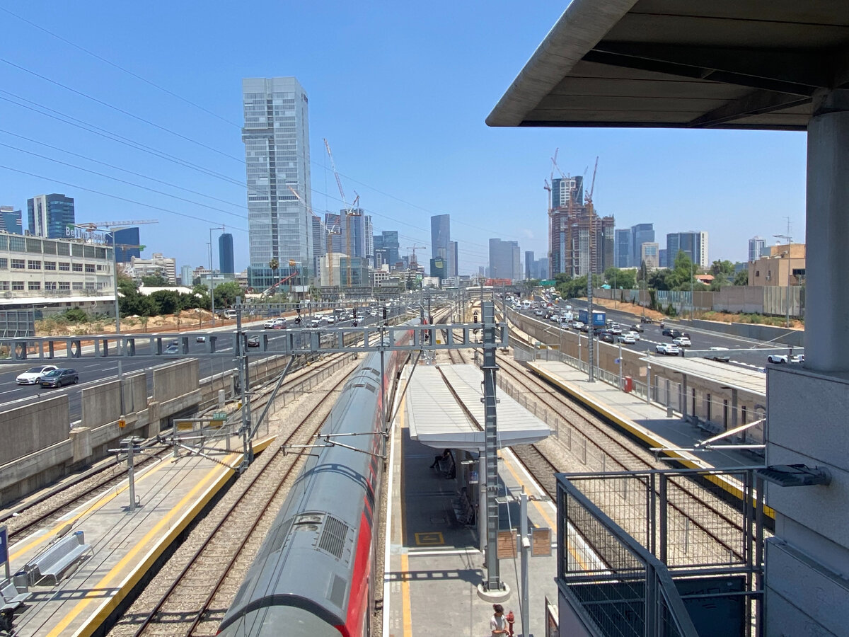 Изучив информацию об общественном транспорте, мы решили добираться на поезде, т.к. это был самый быстрый и как нам показалось, простой вариант проезда. Стоимость проезда для одного человека составила 15,50 шекеля, 344 руб. (курс во время поезди за 1 шекель - 22,20 руб.). Станция поезда находится непосредственно под зданием аэропорта, через 5-7 минут после выхода из зала аэропорта, мы уже находились на платформе. Поездка на поезде до города Тель-Авив, станция Тель-Авив-ха-Хагана, заняла 15 минут. Остановка/ станция в Тель-Авиве и в Аэропорту не являются конечными, поезд дальше идет в другие города Израиля, поэтому надо быть внимательным )))