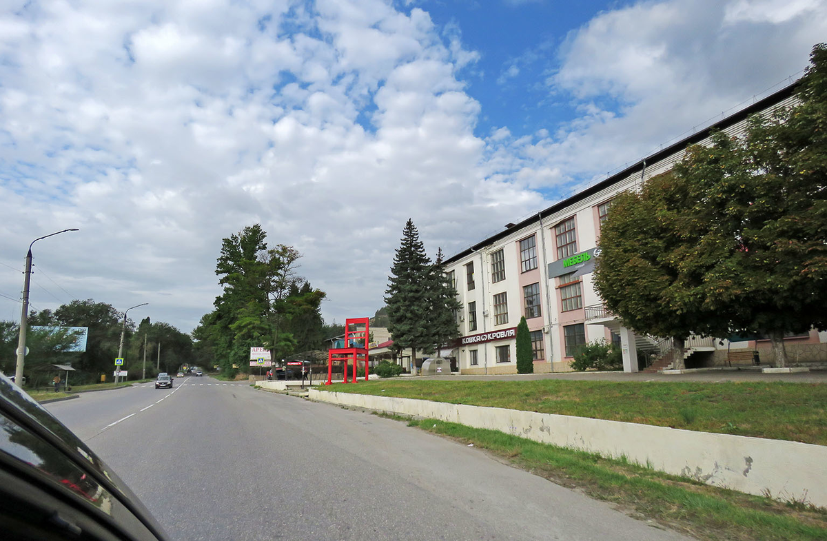 Мимо мебельной фабрики "Бештау" с мега-табуретом у проходной...
