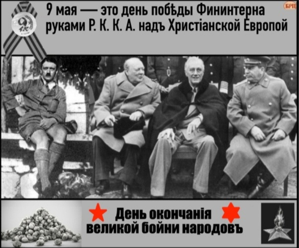 Кровью подьяремного народа коммунистическая партия щедро заплатила за продолжаемое "дело Мировой революции" или назовем привычнее — за "дело Ленина и Сталина". Этой кровопролитнейшей войной расхристовленный русскоязычный народ уже навсегда повязывался с еvрейской религией коммунизма (коммунизм — это "устранение старого мира") и безбожным изуверным племенем "извергов рода человеческого", на которое падала анафема русской Поместной Церкви 1917 года.