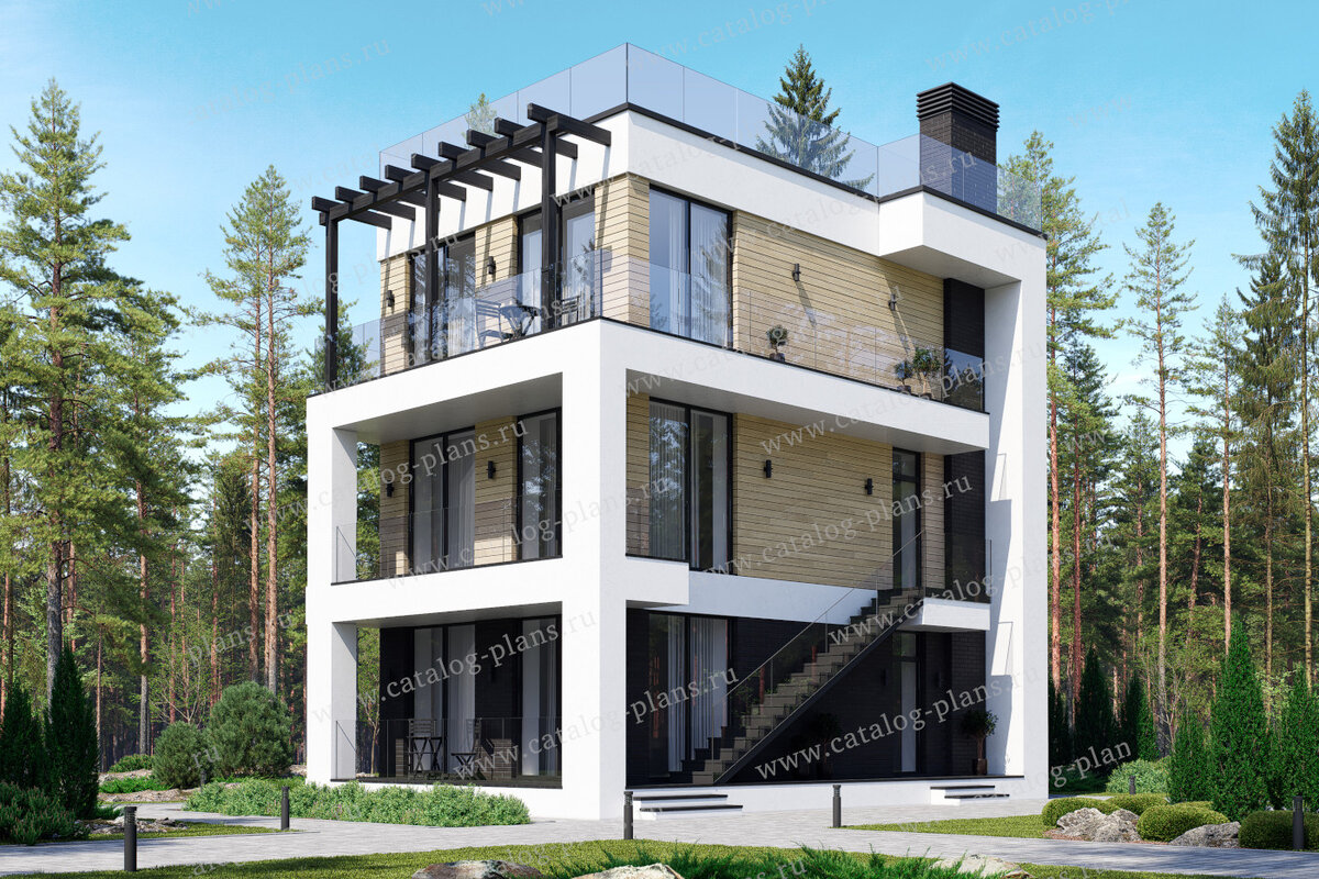 Общая площадь: 140 м² Террасы, балконы: 50,13 м² Габариты: 10x6.5 м Высота конька: 10.2 м Наружные стены: монолитный ж/б каркас с заполнением керамзитобетонными блоками 390 Фундамент: свайно-ростверковый ж/б Перекрытия: монолитные ж/б Крыша: плоская Кровля: наплавляемая или пвх мембрана Наружная отделка: клинкерная плитка, планкен, штукатурка Цоколь: нет Архитектурный стиль: хай-тек Подробнее о проекте: