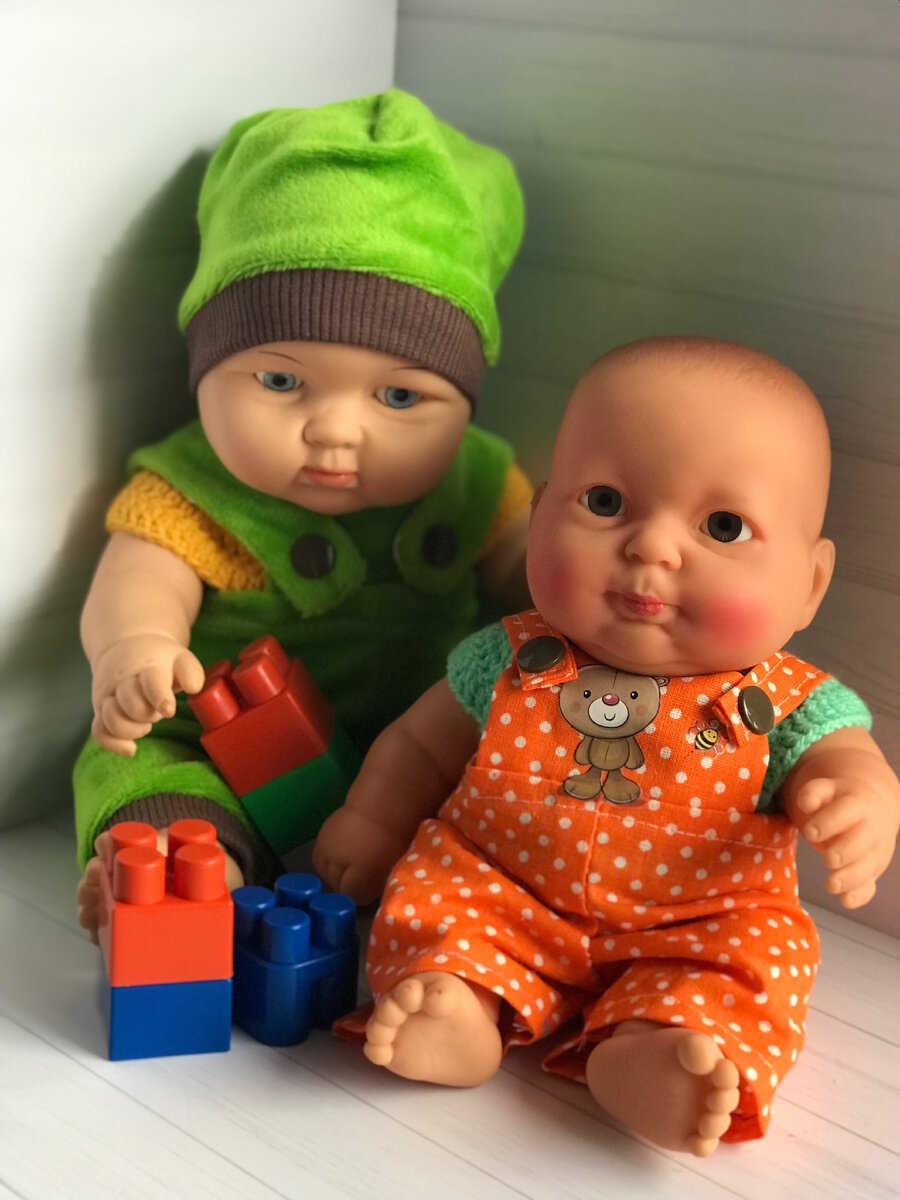 Доброго дня, дорогие друзья ☀️ Сегодня покажу последних малышей из детского сада, которых я привела в порядок . Первым делом я искупала мальчишек Два румяных карапуза требовали одежду . Обоим связала кофточки и сшила комбинезоны. Одному даже шапочка досталась Чудесные малыши идут завтра в сад ☺️