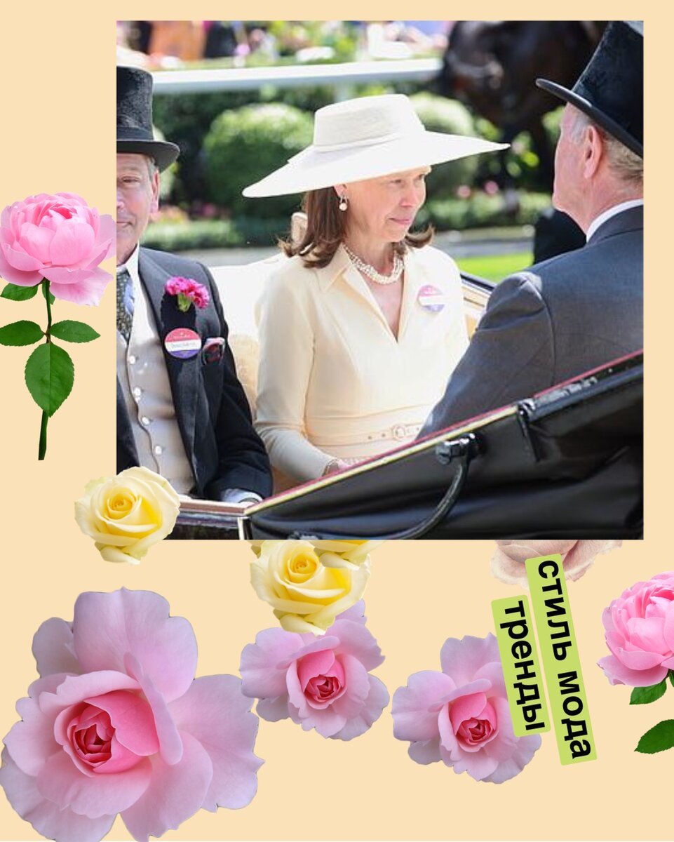 Она была в Королевской процессии пятого, заключительного дня скачек. Вместе с мужем. Леди Сару, дочь принцессы Маргарет и кузину короля, британцы называют «леди до кончиков пальцев». Поэтому ее наряд я выделила больше. Она носила очень нежного оттенка бледно-желтое платье для Аскота, которое она также носила для коронации. Платье от Джаспера Конрана, чьи вещи она умеет носить. Напомню, что в платье от Конрана она была на своей свадьбе. Сара также носила серьги своей матери принцессы Маргарет и жемчужное ожерелье с бриллиантовой застежкой.По случаю застежку проворачивают на спину или носят ее как центральную вставку , поворачивая вперед.