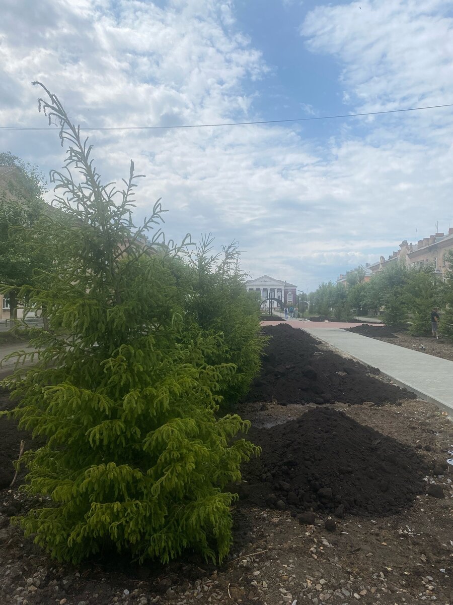 В поселке Красногорский уже второй год пытаются благоустроить сквер. Но пока попытки, к сожалению, не особо успешны. И вот вновь в этом году навезли посадочного материала:
