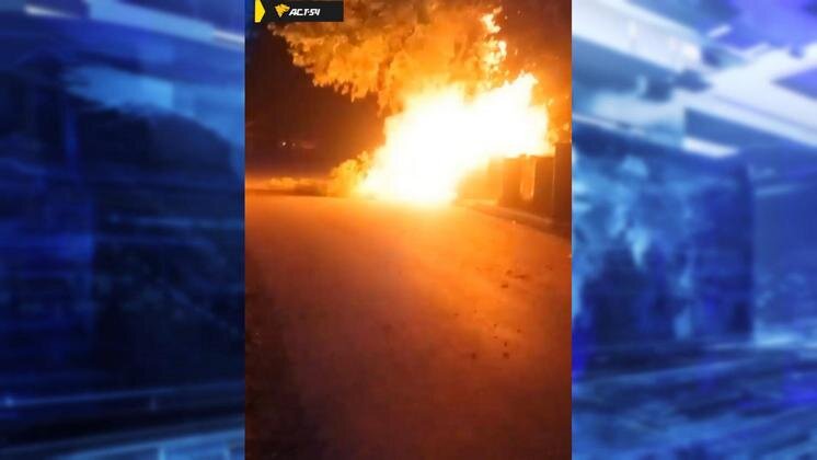 В Калининском районе Новосибирска местных жителей напугал столб огня у школы № 26 ночью 25 июня 2023 года. Видео происшествия опубликовали в группе «АСТ-54» в социальной сети «ВКонтакте».