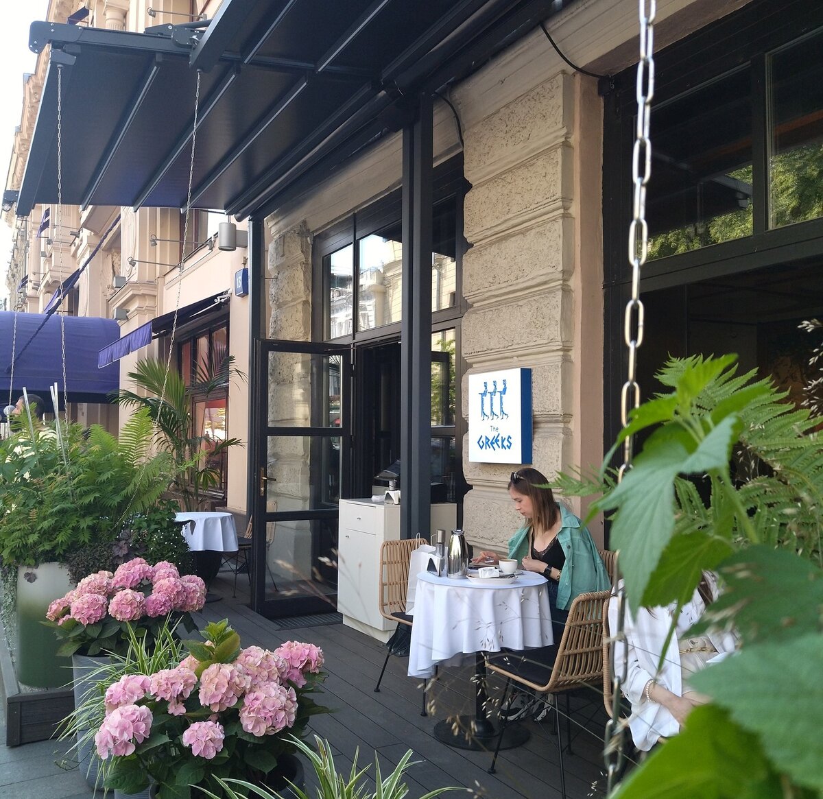 Если жарким летне-московским полднем спуститься по Кузнецкому Мосту и свернуть на Неглинную, то в ряду кафешек слева вдруг обнаружится родное – «The Greeks». Заглянем? Столики на открытой веранде прячутся в зелени и цветах – просто оазис в центре столицы. Внутри ресторана зелени и прохлады не меньше, хотя кухня прямо посреди общего зала, за стойкой зеленого мрамора. А на ней… просто критский рыночек-лайки – не иначе! Зеленые лаймы и рыжие апельсинки, румяные помидоры и огненные перцы, баклажаны-фиолет и лимоны-солнце… Где расположиться? В райских кущах веранды? На мягком диване под «огнедышащей» скалой с древнего Санторини? Или у стойки, за которой колдуют повара? Заказал, например, хорьятики – и наблюдай за процессом его создания. Греческий салат тут особенный – с карамелизированными оливками. И привычные мусака, дзадзики, даже пита – в авторском варианте. – Видите ли, мы не позиционируем себя как ресторан аутентичной греческой кухни – скорее средиземноморской, с греческим акцентом, –