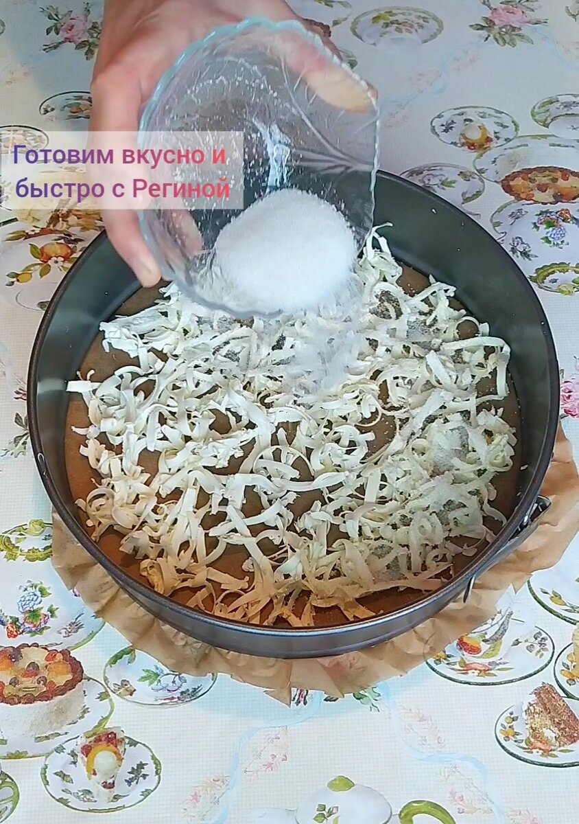 Если вы также, как я, каждый раз задумываетесь, какую выпечку приготовить в очередной раз - на помощь придет очень простой рецепт пирога с орехами и яблоками. Мне этот рецепт нравится тем, что он универсальный. Его можно использовать как основную базу для различных модификаций. СПОСОБ ПРИГОТОВЛЕНИЯ: Для начала необходимо подготовить форму для выпечки (я использую форму d20см). Дно формы необходимо застелить пергаментной бумагой. Затем на крупной терке натираем холодный маргарин либо постное масло. Для тех, кто не постится, вместо маргарина можно использовать обычное сливочное масло Сверху посыпаем сахаром и грецкими орехами, измельченными в блендере. Небольшой совет. Перед измельчением грецкие орехи советую обжарить на раскаленной сковороде в течении 5 минут. Будет более насыщенный вкус и аромат. Далее очищаем яблоки от кожуры, сердцевинки и нарезаем мелким кубиком. Не берите плотные зеленые яблоки - они не успеют приготовиться и останутся жесткими. Вливаем в них лимонный сок, хорошо