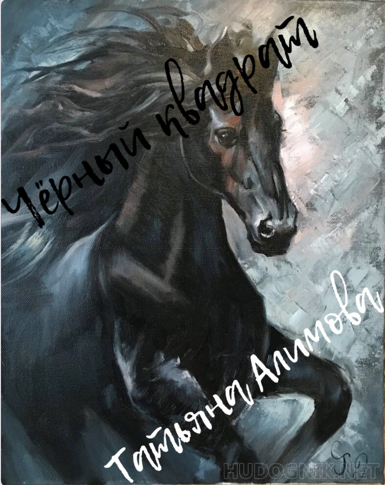 Но вдруг, к моему величайшему изумлению, картина стала оживать. Она стала какой-то многогранной и словно начала выходить из самой себя, постепенно обретая очертания вороного коня, скакуна невероятной красоты. Его гладкая шкура блестела и переливалась от иссиня-чёрного до изумрудно-золотого цвета. Ни прежде, ни потом, я не видел такого красивого коня. Он бил копытом от нетерпения и фыркал. Я чувствовал тёплый воздух, вырывающийся из его ноздрей.