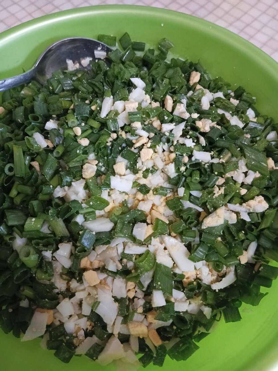 Люблю быстрые рецепты и вкусные завтраки. Как только появляется зеленый лук часто делаю пирожки с луком яйцом, но только ленивые. Моей семье они даже больше нравятся, чем с начинкой внутри. Для теста я беру 1 ст. кефира, 2 яйца, муку, соль, соду. Тесто должно быть, как сметана. Для начинки 10 яиц, зеленый лук, соль. Делаю тесто добавляю начинку, все перемешиваю. Жарю на среднем огне, они получаются пышные, хрустящие. Можно для начинки использовать обжаренный фарш. Приятного аппетита!