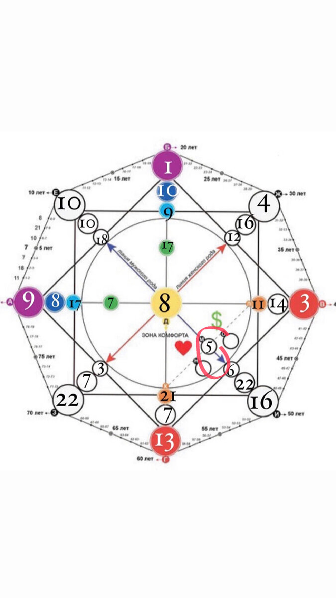 Привет, дорогие! сегодня в заключительной части говорим о предназначениях и каналах отношений и финансов🩷 итак, для того, чтобы рассчитать каналы отношений и финансов, мы должны сложить между собой энергии верхушки хвостика и крайней левой (самой маленькой) точки материальной кармы. в примере мы сложим 21+11=32, 3+2=5 теперь получившуюся энергию складываем с теми же точками: 5+21= 26, 2+6=8 5+11=16 здесь оговорюсь, что эти каналы зачастую переоценены, они несут лишь дополнительную информацию. для качественной карьерной реализации и гармоничных отношений, нужно сначала проработать основные энергии всей матрицы (самые крупные позиции и арканы, преобладающие по количеству). переходим к предназначениям! для расчета личного, первого предназначения, нам понадобятся вертикальная и горизонтальная линии по центру матрицы (неба и земли соответственно). смотрим на две крайние энергии по каждой линии и складываем их между собой. линия неба: 1+13=14 линия земли: 9+3=12 теперь сложим их и получ