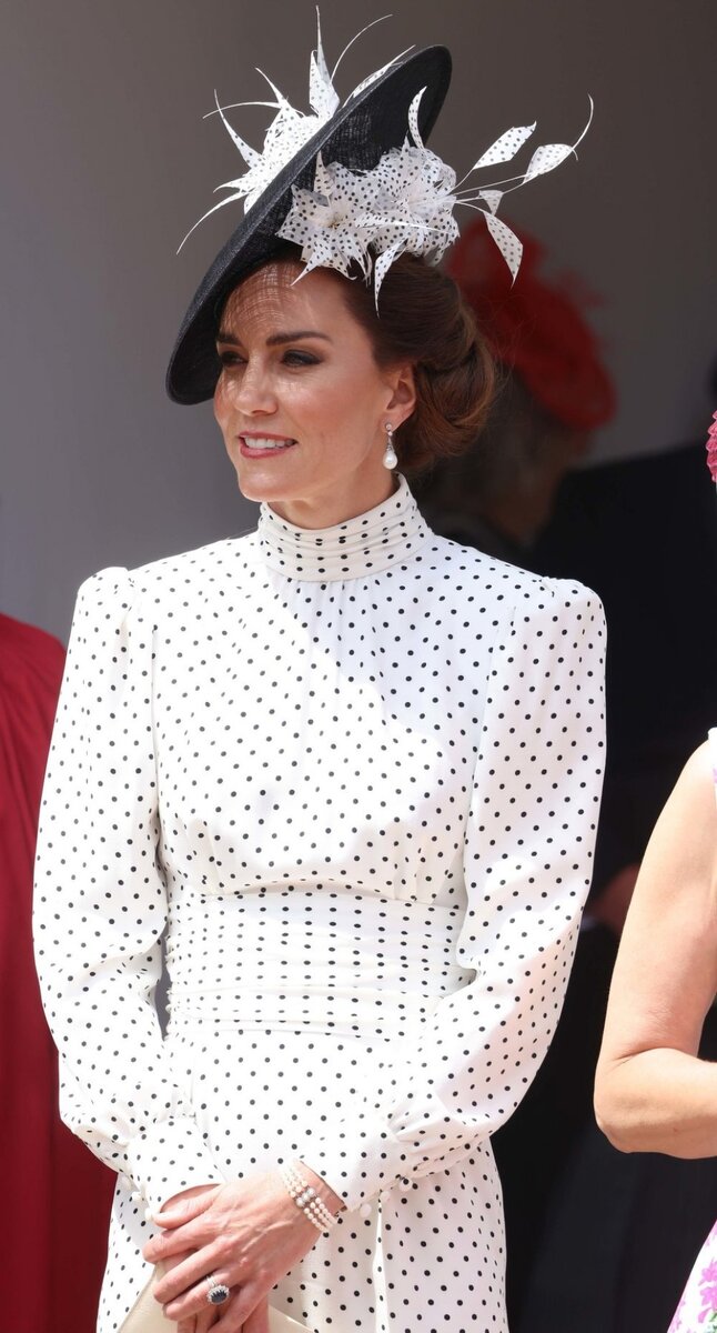 Несколько дней назад Кейт Миддлтон надела эффектное платье в горошек для традиционного парада рыцарей, и многие признали сходство с образом испанской королевы Летиции, который она носила четыре года назад. Некоторые дошли до того, что обвинили принцессу Уэльскую в копировании! Дело в том, что платья чрезвычайно похожи. А именно, белую модель с черными точками королева Испании в 2019 году надела на церемонию в Севилье. Кейт Миддлтон выбрала платье в горох с белым поясом и поднятым воротником, подписанное ее любимым британским дизайнером Alessandra Rich. Она дополнила образ оригинальной черной шляпкой и своими новыми любимыми туфлями в стиле Мэри Джейн с эффектным двухцветным дизайном. Однако из-за обвинений в копировании сочетания поклонники Кейт Миддлтон встали на ее защиту, заявив, что с ее знанием моды уж точно незачем подражать чужому образу.