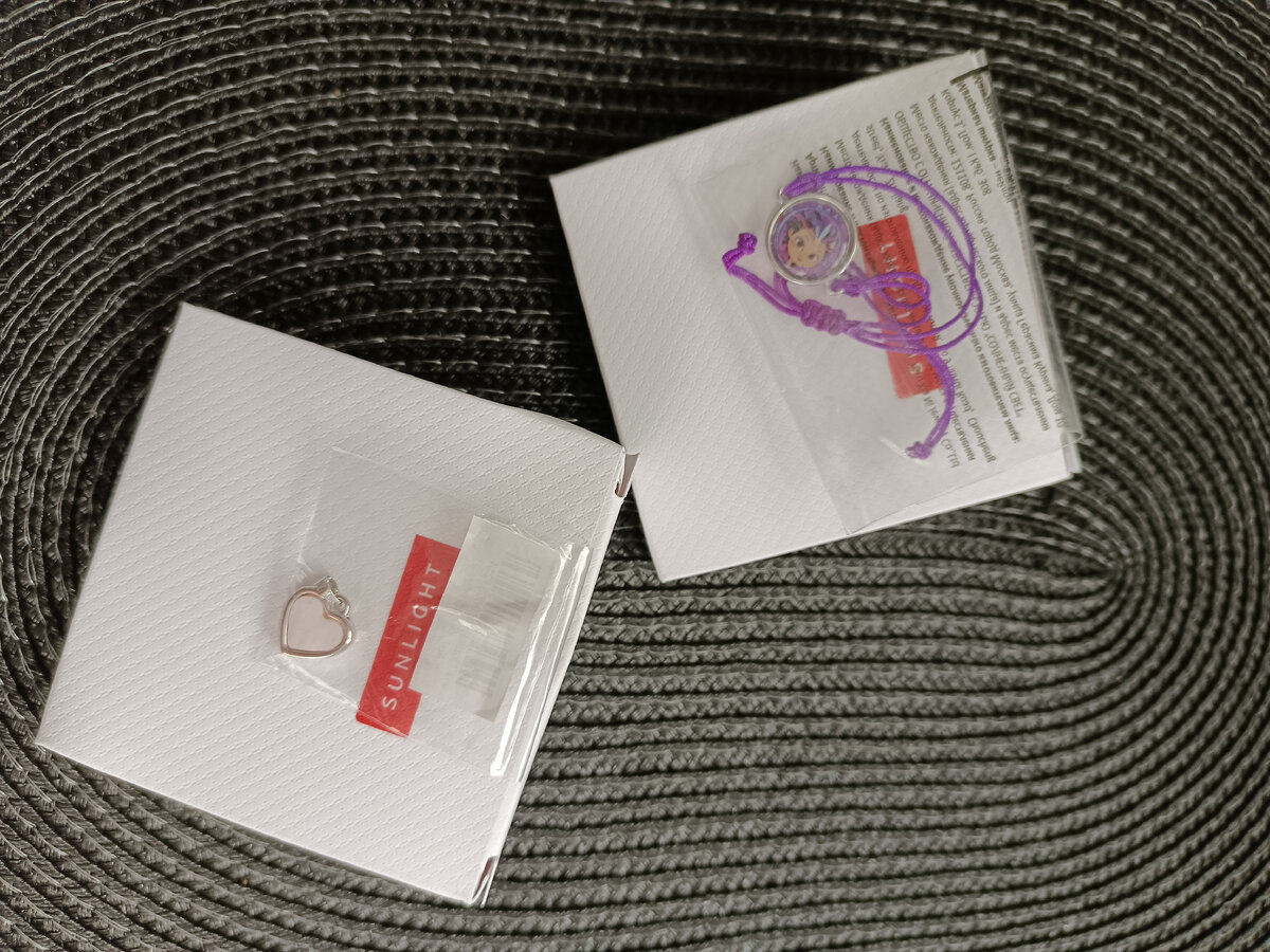 На удивление, подвески красивые. Не то, что 10 лет назад были. На выбор пять штук: сердечко, капля, листик и два ключика. Дочь выбрала сердечко.
