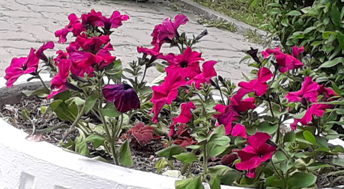 Всем ПРИВЕТИК! Друзья, вот такую бюджетную клумбу создала моя подружка Оксана. Ей очень хотелось, чтобы приходя домой, после морально тяжелого рабочего дня, глаз радовала такая красота… Для клумбы взяла самые распространенные цветы – петунью. Петунья – это красивый цветок, который известен своей уникальной формой и насыщенным цветом. Родина - тропические и субтропические регионы мира. Во многих странах петунья ассоциируется с любовью, красотой и изяществом. Внешне петунья напоминает шляпу, которая состоит из множества узких лепестков. Цветы могут быть различным: от ярко-красного до белого. Один из наиболее редких видов петуньи – это петунья чёрного цвета, которая привлекает внимание своей необычной отделкой. Но мне черная петунья ассоциируется с печалью, а хочется радости. Петунья является одним из самых популярных цветов для выращивания в качестве садового растения. Очень любит свет, поэтому ее нужно размещать в ярких и солнечных местах. Влажность воздуха так же является важным факт