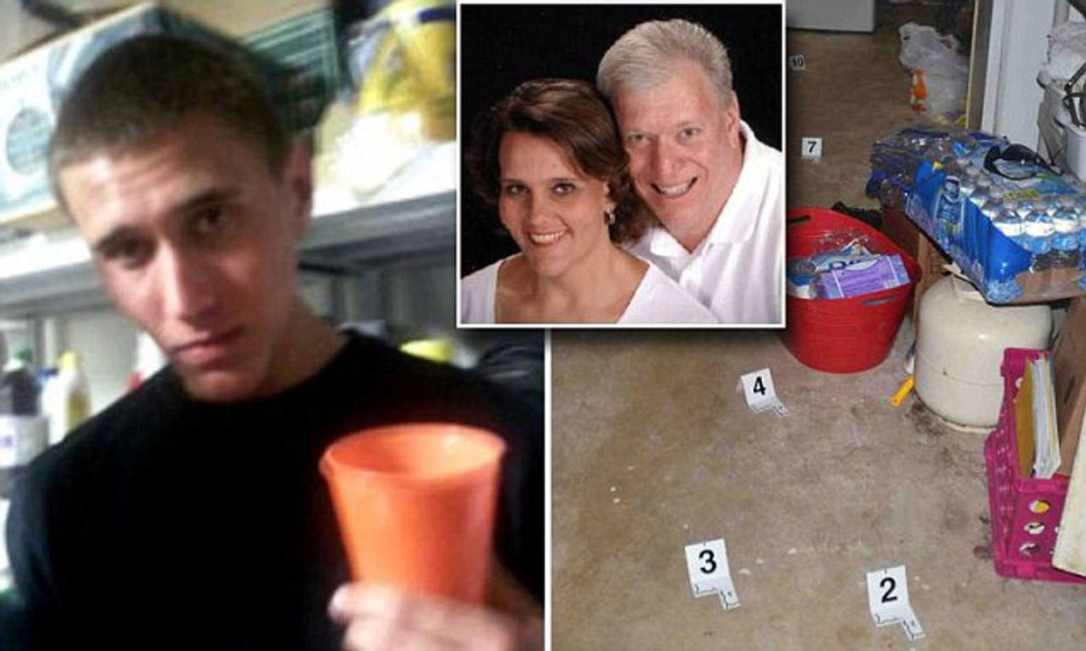 Он принял три таблетки экстази и пошёл в комнату родителей. Он 5 минут стоял сзади своей матери Мэри-Джо, пока она работала за компьютером, а затем начал избивать ее молотком. На крики прибежал отец Блэйк, которого Тайлер также забил до смерти молотком. Следующие 3 часа он очищал дом от крови, чтобы начать вечеринку. Тела родителей он спрятал в главной спальне.