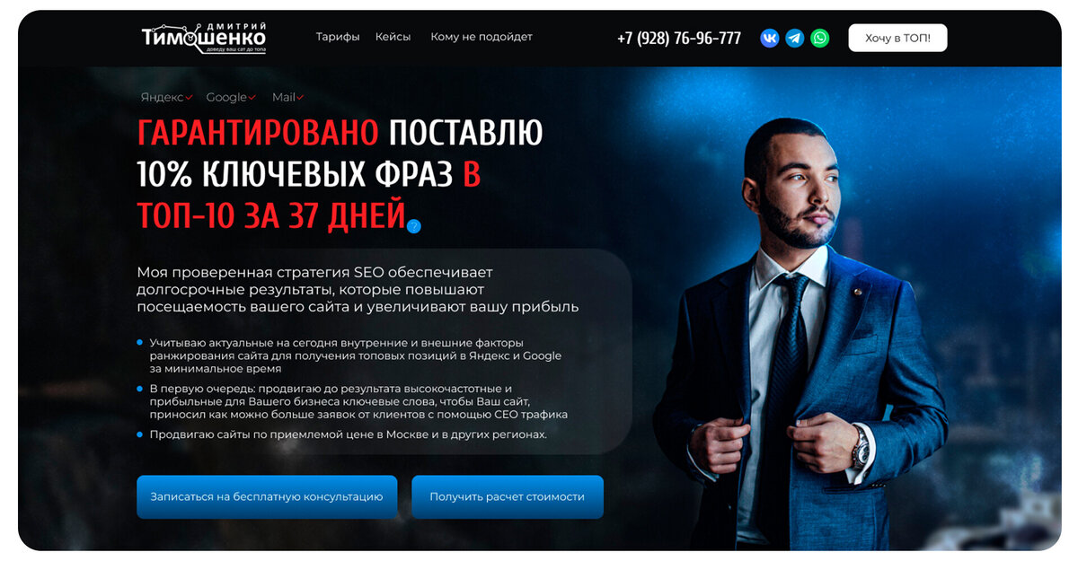 Кейс: разработка прототипа и дизайна под лендинг для SEO специалиста