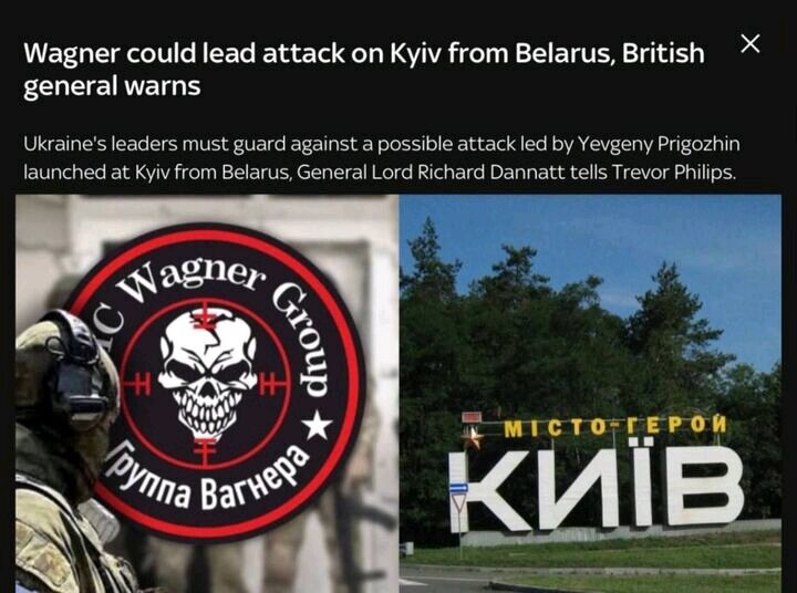 ⚡️ЧВК «Вагнер» могут возглавить наступление на Киев из Беларуси, — Sky News