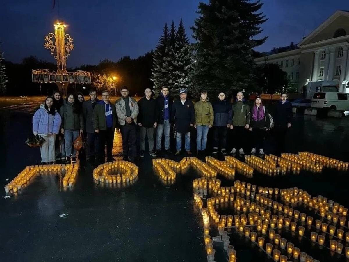 В Каменске-Уральском памятная акция прошла на мемориале славы. Там партийцы, общественники и неравнодушные горожане изобразили из свечей вечный огонь.