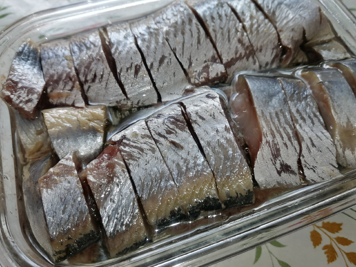 Наконец-то, готова селедка. Солю я её тушками, без головы и потрошеными, а соленую уже чищу и кусочками нарезаю, чтобы лучше хранилась, добавляю немного растительного масла. Селедка получилась вкусная, только смотрю я на неё, ну куда нам столько, надо было на одну меньше покупать, не четыре, а три. Можно и две, но когда мало, тоже возиться не хочется.