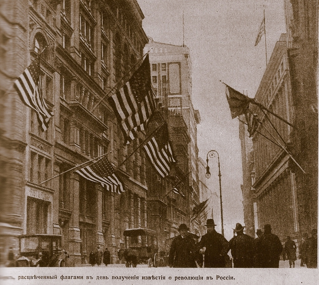 На фотографии запечатлен Нью-Йорк после получения известия о Февральской революции в России.