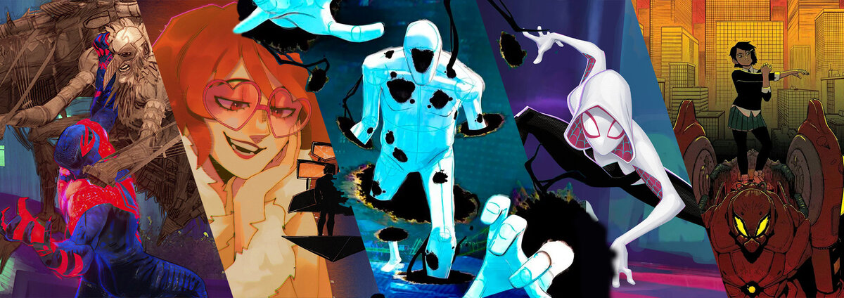 Так полюбившаяся всем команда из 6 людей-пауков из 1 части мультфильма получила и получит свое логическое продолжение и дальнейшее раскрытие. Кроме Майлза и Гвен, вокруг которых в общем-то и вращается сюжет, во второй части также продолжали раскрытие Питера Б. Паркера, который все-таки вернулся к Мери Джейн и у них появился ребенок. А вот про остальных троих пауков нам мало чего говорится. Нуар и Свин появляются только в конце и, я полагаю, раскроются в третьей части, Пенни Паркер и её роботу SP//DR уделено чуть больше кадров, в которых можно наблюдать, что девочка сделала нового робота, более похожего на комиксный вариант, который в своё время был гигантской отсылкой на "Евангелион".
