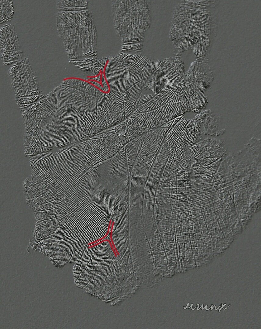 Это наличие папиллярного узора - Сердце Урана и смещение трирадиуса холма Нептуна от нормы, обычно уползает высоко на холм Луны.