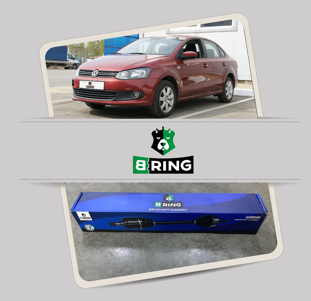 Один из клиентов проводил в специализированном сервисном центре установку приводного вала в сборе B-RING, премиум-линейки Hardig (артикул HBDL1001). Хотим поделиться набором рекомендаций, обеспечивающих длительную и надежную эксплуатацию приводного вала на автомобиле Volkswagen Polo. Любую работу всегда следует начинать с обеспечения правил техники безопасности. Используйте необходимые средства индивидуальной защиты (перчатки, спецодежду, защитные очки, обувь). Убедитесь в безопасности подъема авто. Порядок замены следующий. Демонтаж. 1. Поднять автомобиль на подъемнике. 2. Открутить колесные болты, снять колесо. 3. Открутить ступичную двенадцатигранную гайку с помощью насадки на 36 мм. 4. Отвернуть гайки шаровой опоры. 5. Отсоединить рычаг подвески от шаровой опоры, которая остаётся закреплённой на поворотном кулаке. 6. Амортизаторную стойку отклонить наружу и подпереть её, например, деревянным бруском, при этом вытянуть цапфу шарнира приводного вала из ступичного подшипника. 7. Есл