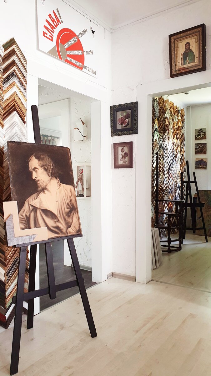 В багетной мастерской картина сбоку. Мужчина, чуть похожий на Христа, Рисует жизнь как длинную дорогу, Не зная, что короткая стезя... * С другого боку шторка, как дорожка, Колышется как нежная душа. В багетной мастерской побыть немножко Так хорошо, так трепетно с утра... * ♡Валерий Пятница http://baget-art.com/
