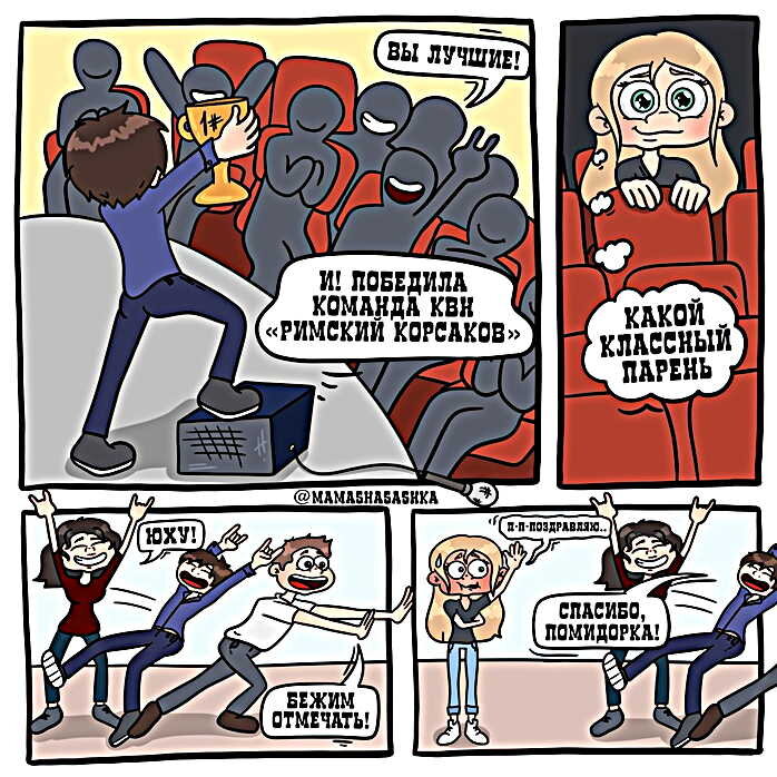 Ещё больше комиксов читайте в рубрикаторе. Как вам история любви Саши и Амира? Надеюсь, мне удалось поднять вам настроение. Если да - ставьте лайк 👍 и не забывайте о подписке на канал, чтобы не пропускать новые выпуски забавных комиксов.