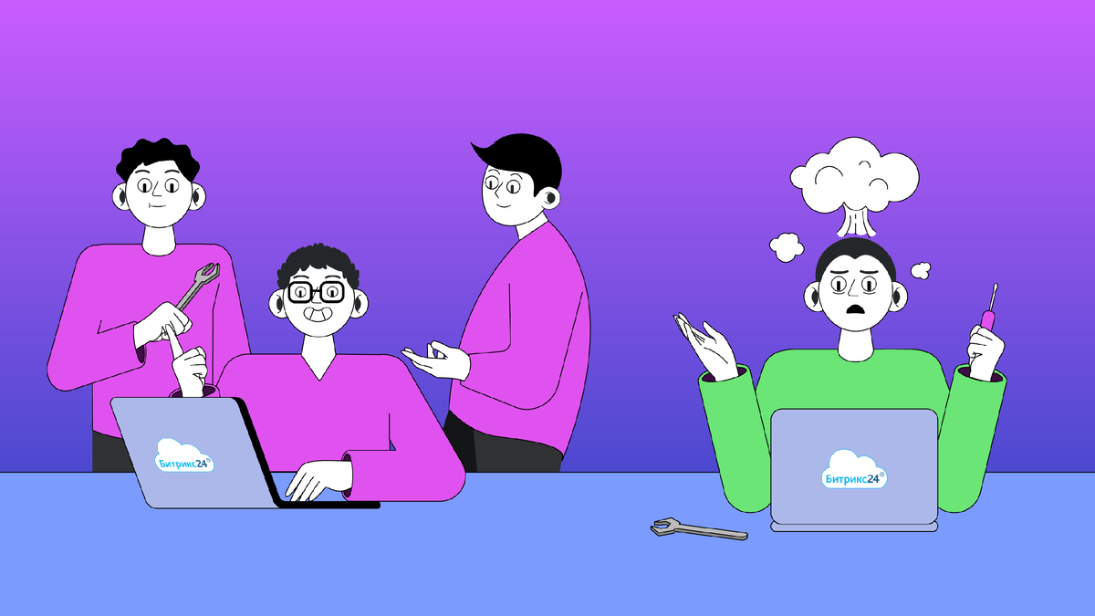 Когда штатный специалист настраивает Битрикс24 по техническому заданию или согласно пожеланиям руководства, сотрудники до конца не понимают, какие сценарии заложены в систему и как они работают. В компании знают, что можно автоматизировать рутинные задачи, но как это сделать — непонятно. Но системный администратор — не преподаватель: он настроит портал и не будет заниматься обучением.