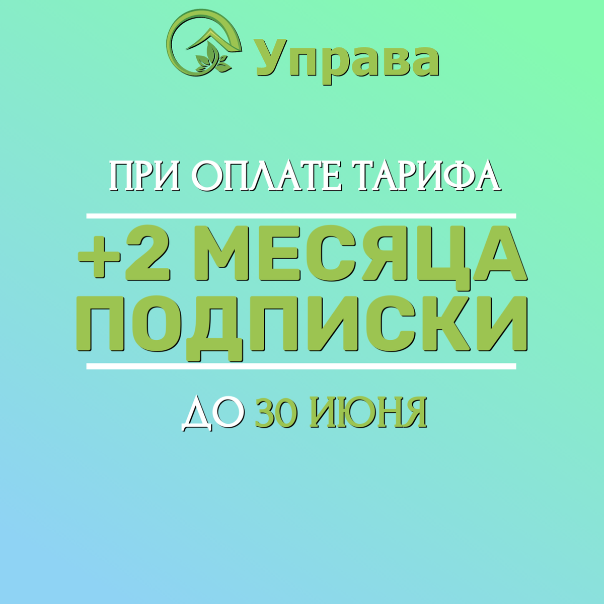 C текущего момента до 30.06.2023 включительно дарим ДВА МЕСЯЦА подписки дополнительно за приобретение ЛЮБОЙ подписки в системе управления СНТ "Управа"!!! Для получения 2 дополнительных месяцев подписки достаточно создать счёт на подписку, выбрав подходящий тариф в разделе "Подписки" отправить в чат техподдержки (раздел "Обращения пользователей") промокод ИЮНЬ, мы отредактируем в счёте период подписки и после этого до 30.06.2023 необходимо оплатить счёт.