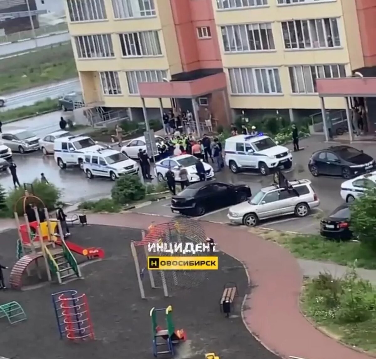 В Новосибирске трое мужчин с флагами ЧВК «Вагнер» устроили потасовку во дворе ЖК
