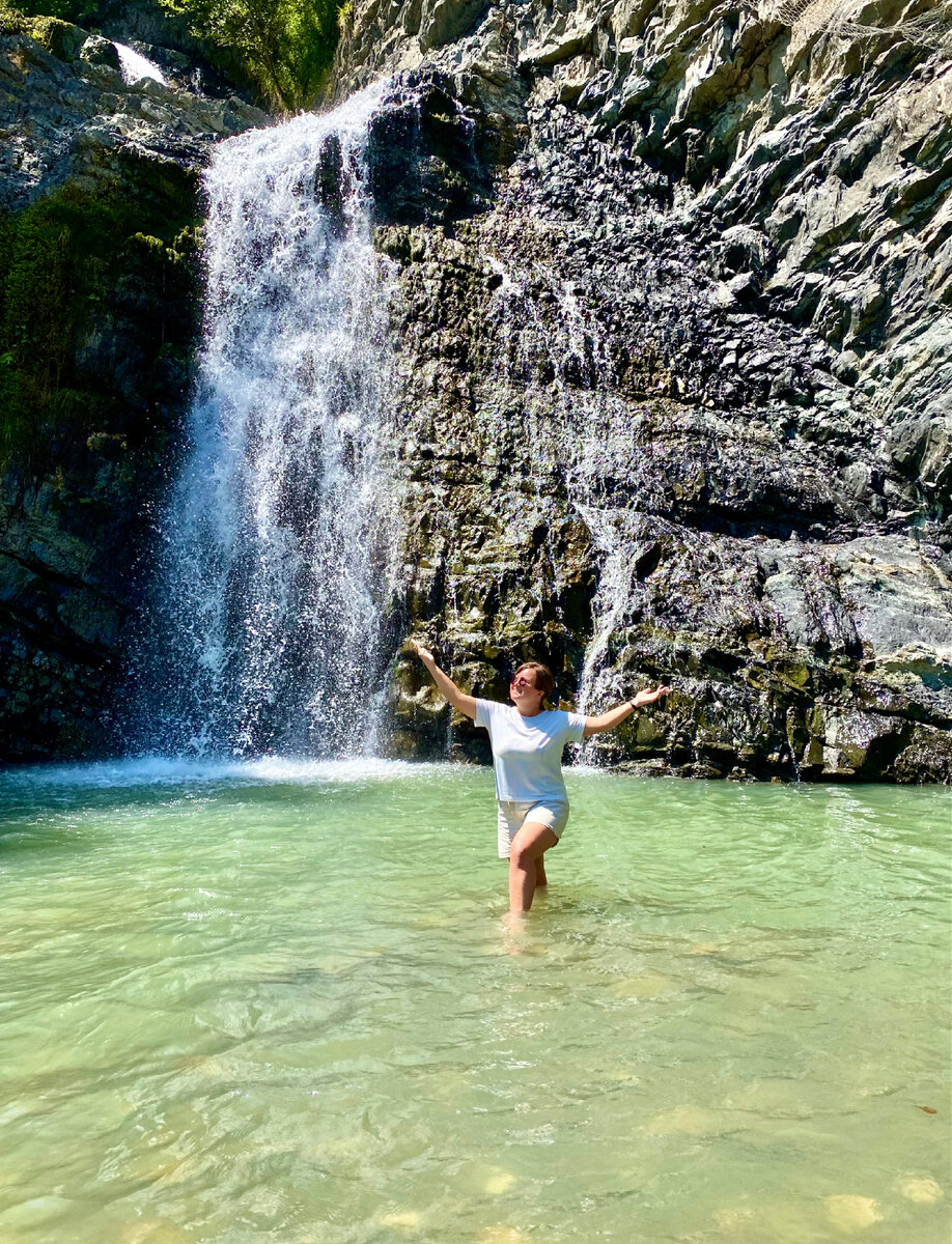 Для этого больше всего располагает самый первый из Змейковских водопадов, который ниспадает рядом с кафе, купель там огромная. Однако на первой точке останавливаться мы не стали, прошли дальше и нашли то место, куда добираются не все, а это значит, можно охлаждаться в купели почти в гордом одиночестве, ну и снимать материал для канала, чтобы вам показать – без этого никуда😉.