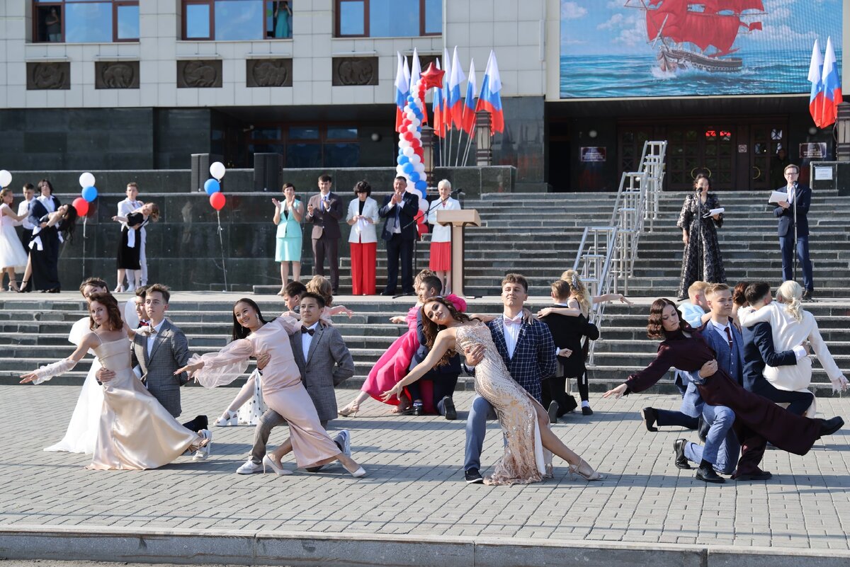 Вечером 23 июня в центре Горно-Алтайска произошел транспортный затор, но, несмотря на трудности передвижения, горожане понимающе улыбались. На площадке перед Национальным театром состоялся выпускной вечер учеников городских средних школ. В этом году в Республике Алтай выпускниками стали более тысячи трехсот человек, в Горно-Алтайске — 569, из них 29 медалистов.