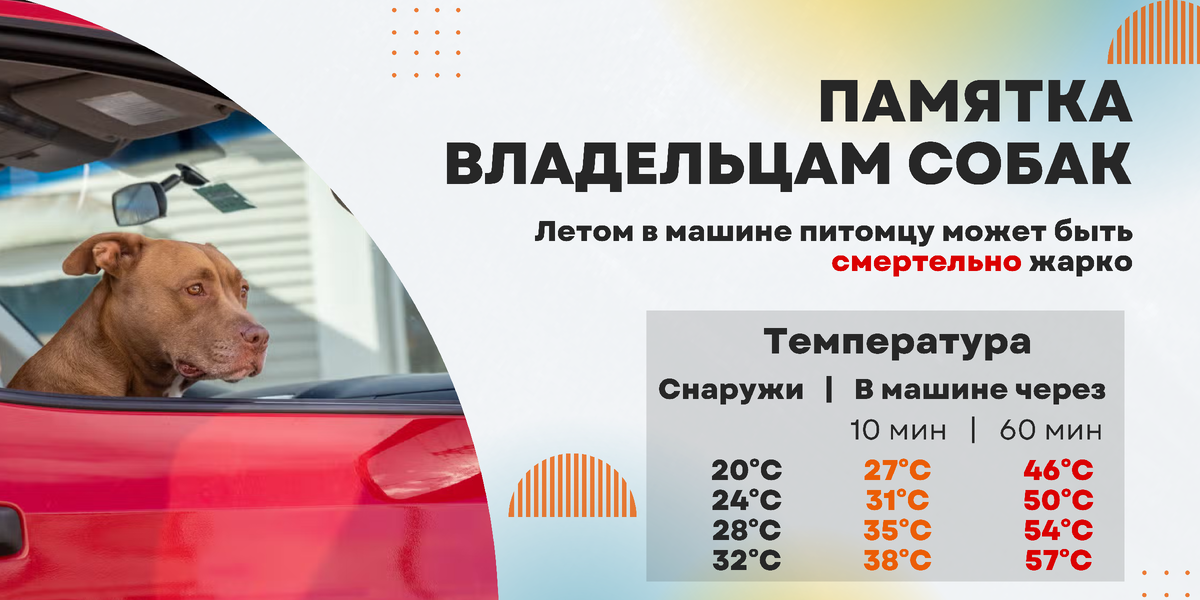 Большинство владельцев собак знают, что нельзя оставлять питомца в раскаленной машине. Температура может подняться до опасного уровня за считанные минуты, подвергая вашу собаку риску теплового удара. Но что, если вы немного приоткроете окно? Делает ли это безопасным оставлять вашу собаку в машине? Ответим коротко – нет. Для большинства людей нормальная температура - 36,6°С. У собак и кошек она выше: от 37,5 до 39°С. То есть критических 40-41°С они достигнут быстрее. Более активные собаки за счет движения будут перегреваться быстрее, а охлаждаться менее эффективно. Собака в раскаленной машине не может сама открыть двери и выйти. Она не может позвать на помощь и сообщить о плохом самочувствии. Если температура тела собаки становится выше 40°С, за считаные минуты может произойти тепловой удар. Животное потеряет сознание и может умереть от остановки дыхания. В жаркую погоду всегда есть смысл включить кондиционер или не оставлять питомца в машине.