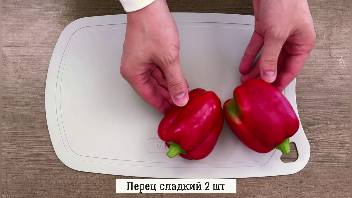 Для приготовления нам первым делом понадобится сладкий красный перец две штуки. Перец нужно почистить от семян и нарезать очень мелким кубиком, прям очень мелким, размером примерно 1-2 миллиметра. Вся суть в том, что все ингредиенты в этот салат нарезаются очень мелко.