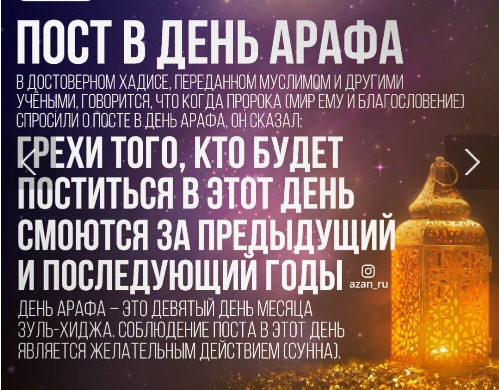 Твой шанс - День Арафат предшествует празднику Курбан-байрам.