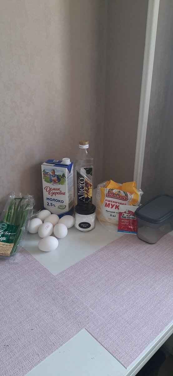 Делюсь с Вами простым и вкусным рецептом пирожков с луком и яйцом. Для начала подготовим все ингредиенты. Для теста: Яйцо - 1 шт. Мука - 180 гр. Растительное масло - 5 ст.ложек. Дрожжи - 11гр. Сахар - 2 ч.ложки. Соль - 1 ч.ложка. Для начинки: Яйца - 5 шт; Зелёный лук - 100 гр. Яйцо для смазки пирожков - 1 шт. Начнём готовку: Просееваем муку для обогащения кислородом. В отдельную миску высыпаем дрожжи и одну ч.ложку сахара, заливаем водой и оставляем на 15 мин. Пока дрожжи подходят. В глубокую миску разбить яйцо, добавить ч.ложку сахара и ч.ложку соли, все смешиваем. К яичный смеси вливаем слегка подогревом молоко и смешиваем. Дальше вводим в смесь дрожжи и аккуратно перемешиваем. Далее вливаем 5 ст.ложек растительного масла. Теперь к нашей смеси с дрожжами аккуратно вмешиваем просеяную муку. Тесто замешиваем руками. До получения эластичного и мягкого состояния. После того как мы заметили тесто, накрываем его полотенцем и оставляем "отдыхать" на 1-1,5 часа. Теперь займёмся начинкой