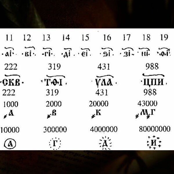 Историк А. И. Соболевский утверждает, что в те годы появилось два арифметических руководства: «Пифагорова таблица» (таблица умножения), которая даже входила в Псалтырь, и «Цифирная счётная мудрость», по-гречески называемая арифметикой. Однако именно цифр – знаков, обозначающих на письме числа – на Руси тогда не было. Начиная с X в. при письме чисел использовали буквы славянского алфавита (глаголицы, кириллицы). Чтобы отличать буквы от цифр, над буквой-цифрой ставили знак титло ̃.