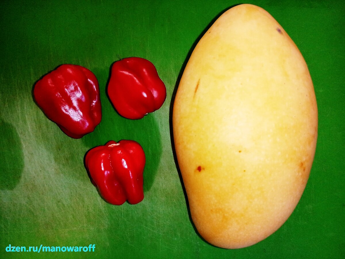 Мои перцы на подоконнике начали созревать в промышленных масштабах, так что пора начинать их перерабатывать. И для начала я решил сделать соус с беспроигрышным сочетанием перца и манго. Для этого нам потребуется: Манго у меня было среднего размера (для сравнения - перцы сантиметра по 4 в длину). Манго нарезаем кусочками размером с перцы. Если у него шкура толстая, то снимаем ее, если тонкая, то можно оставить. Загружаем в блендер куски манго, перцы и чеснок, заливаем воду. Перемалываем все это дело до более-менее однородного состояния. Выливаем получившуюся жижу на сковороду и на минимальном огне доводим до кипения. Добавляем уксус, имбирь, соль и перец, снова доводим до кипения и на минимальном огне готовим, пока соус слегка не загустеет. Регулярно помешивая, разумеется. Снимаем с огня и ждем, пока соус немного не остынет. Добавляем лаймовый сок, хорошенько перемешиваем и перемещаем в простерилизованную банку, которую закрываем простерилизованной крышкой. Для надежности можно еще отпр
