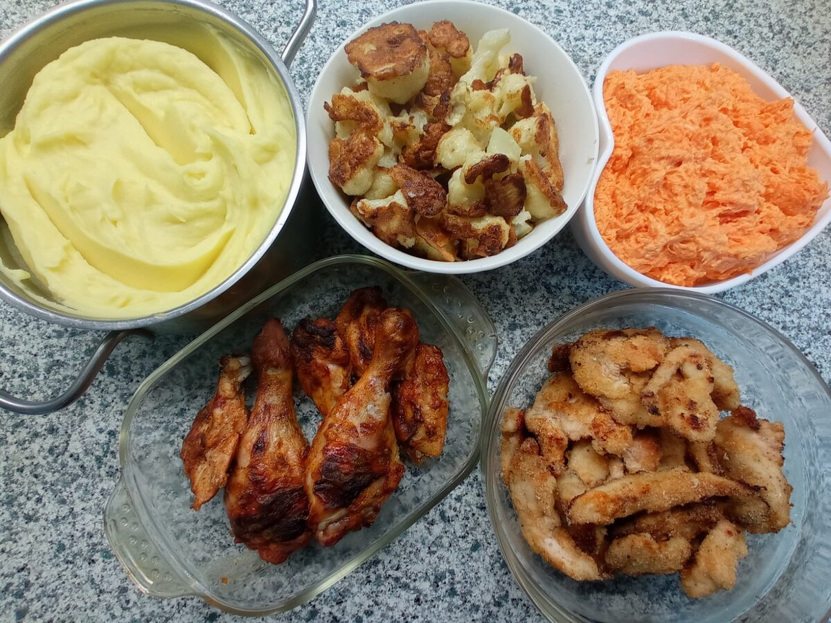 Простые и в тоже время очень вкусные блюда. ПРИГОТОВИЛА: 1. Картофельное пюре. 2. Куриные наггетсы. 3.Запечённые куриные ножки и крылышки. 3. Цветная капуста в кляре. 4. Салат из тёртой моркови с чесноком и сметаной. Приятного аппетита! Если вам понравилось меню на пару дней, ставьте лайк, мне будет очень приятно!))Подписывайтесь на мой канал, чтобы не пропустить новые рецепты и меню!