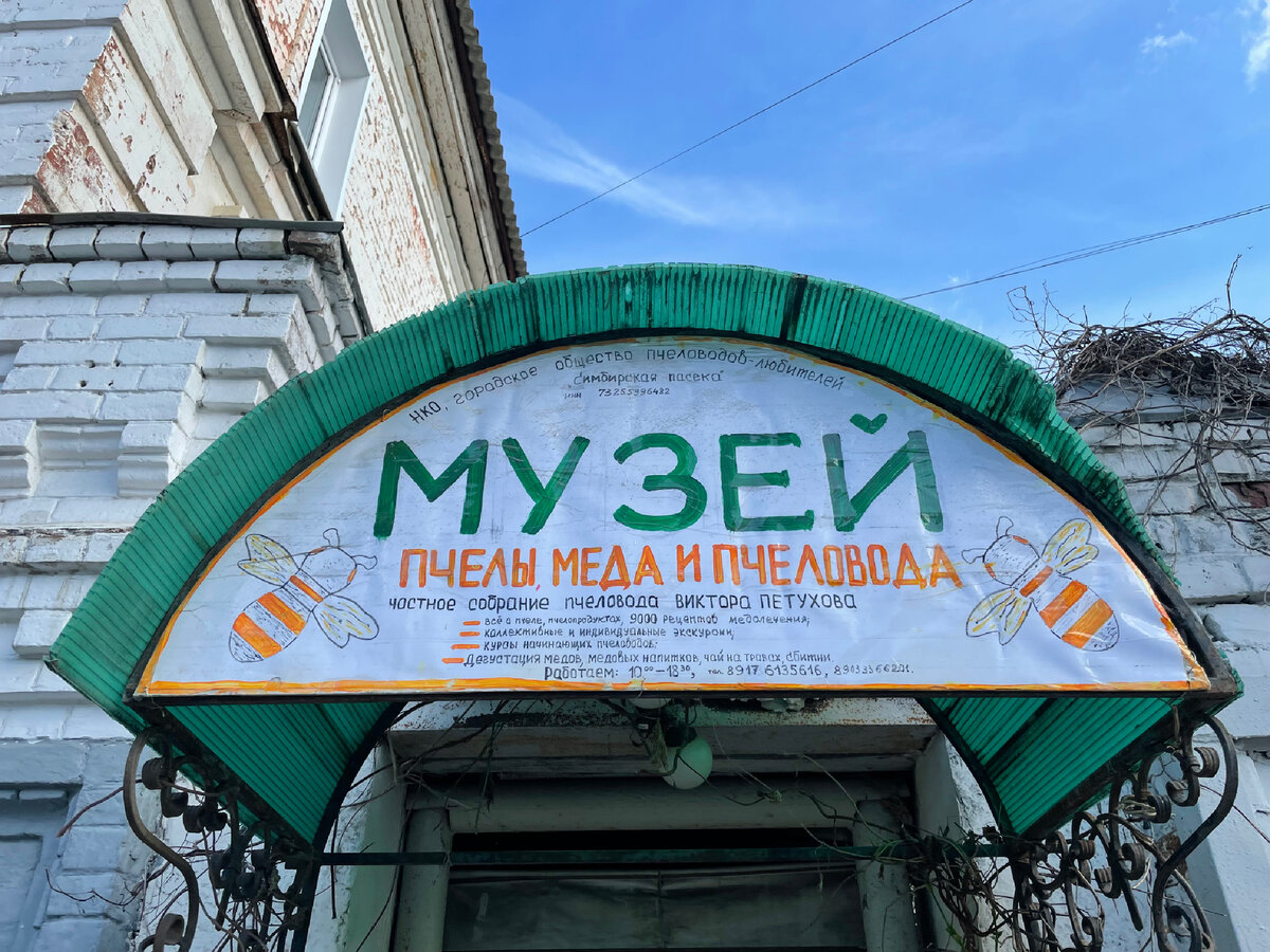 Гуляя по улицам Ульяновска, мы совершенно случайно наткнулись на вывеску "Музей пчелы, меда и пчеловода". Решили заглянуть в него ради любопытства, ведь мед мы обычно просто покупаем, а вот в "медовом" музее не были ни разу. Около входа стоит небольшой столик с табличкой, прочитав которую становится понятно, что мед здесь приобрести тоже можно. От руки даже написаны расценки на его разновидности. Сам музей занимает небольшое цокольное помещение. Внутри довольно прохладно, если не сказать холодно. Вход бесплатный, встречает сам хозяин этого заведения. И сообщает, что посмотреть тут все можно просто так, а если уж мы захотим сами что-то заплатить или купить мед, то он, конечно же возражать не станет. Помещение всего одно, оно небольшое. Видно, что владелец музея сам все тут обустраивал. Очень многие экспонаты представляют собой либо плакаты, либо поделки из подручных материалов. Есть информация и про пчел. Однако большую часть занимают разные вещи прошлых столетий. Тут и всякая