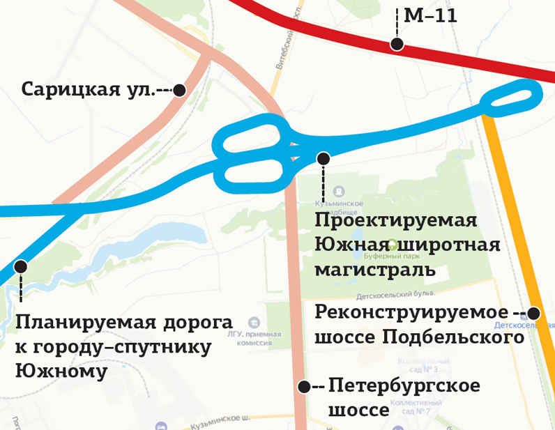 Госстройнадзор Петербурга выдал разрешение на строительство участка Южной широтной магистрали от Сарицкой улицы до развязки с Петербургским шоссе. Документ датирован 23 июня и действует до 23 января 2026 года. Отрезок будущей трассы растянется на 728 метров и будет включать путепровод через железнодорожные пути Балтийского направления. Второй участок магистрали пройдёт от Петербургского шоссе до развязки с шоссе Подбельского. Общая протяжённость трассы составит 17 км, дорога соединит Волхонское шоссе, трассы М-11 "Нева" и Р-21 "Кола", Московское шоссе, Советский проспект. Проект также подразумевает реконструкцию шоссе Подбельского. Контракт на строительство первого этапа магистрали Смольный в феврале заключил с АО "ВАД". Подрядчик должен сдать объект в 2027 году. На ПМЭФ-2023 городские власти подписали соглашение о строительстве платной трассы М-7 с мостом через Неву. Активисты выступили против проекта, поскольку дорога пройдёт над Удельным парком. https://www.dp.ru/a/2023/06/26/gosstr