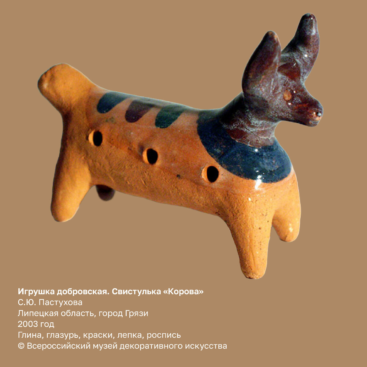 Добровскую игрушку по способу изготовления можно разделить на два типа – лепную и гончарную. Лепные зооморфные игрушки испытали на себе влияние романовского промысла, как в приёмах лепки, так и в декоре. Фигурки животных и птиц имеют вытянутое тулово, оканчивающееся свистком. Цветом выделяется только голова, на спину наносятся три поперечные разноцветные полоски. Антропоморфные фигуры гончарного типа самостоятельны и оригинальны. В основе имеют перевёрнутую «рюмку», вытянутую на гончарном круге, верх игрушки долепливается вручную. В 1938 году добровские гончары были объединены в артель «Ударник», где занимались изготовление посуды на гончарном круге. Об игрушке забыли на долгие годы. В 1960-х годах добровскую игрушку заново «открыл» знаток, исследователь и пропагандист народной игрушки, крупный московский коллекционер Геннадий Михайлович Блинов. Увидеть работы романовских и добровских мастеров-игрушечников можно на выставке «Игрушка Липецкой земли. Романовская и добровская игрушка» д
