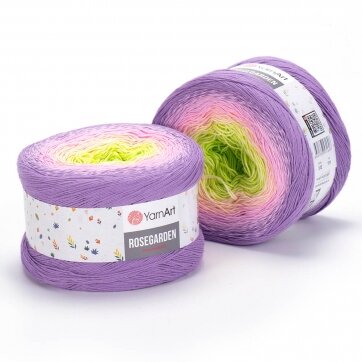 Шаль — идеальный аксессуар. Согреет в холод и защитит от знойных лучей в жару. Дополнит образ и придаст торжественного вида – подходящая накидка превратит повседневный костюм в вечерний наряд. Может послужить стильным шарфом или головным убором. Пряжа Rosegarden. Общая информация: Стоимость: 500 рублей (май 2023), так стоимость 1 мотка в зависимости от места покупки будет от 500 до 1200 рублей Место покупки: Садовод. Производство: Турция Оттенок: 324 Основные характеристики пряжи: 100% хлопок Метраж: 1000 метров, 250 грамм Цвет готового изделия зависит от того, с какой стороны начать вязать - с начала (середины мотка), или снаружи. Яркая новинка секционного крашения. Для работы рекомендованы спицы 2,5, крючок 3. Плотность вязания спицами 28 пет х 40 р. Расход на плечевое изделие - 2 мотка, на шаль - 1 моток. Пряжа отличная, для летних изделий самое то. Состоит из 8 тонких хлопковых нитей, при вязании немного расслаивается. Цвета после ВТО остались прежними. Места соединения нитей - пр