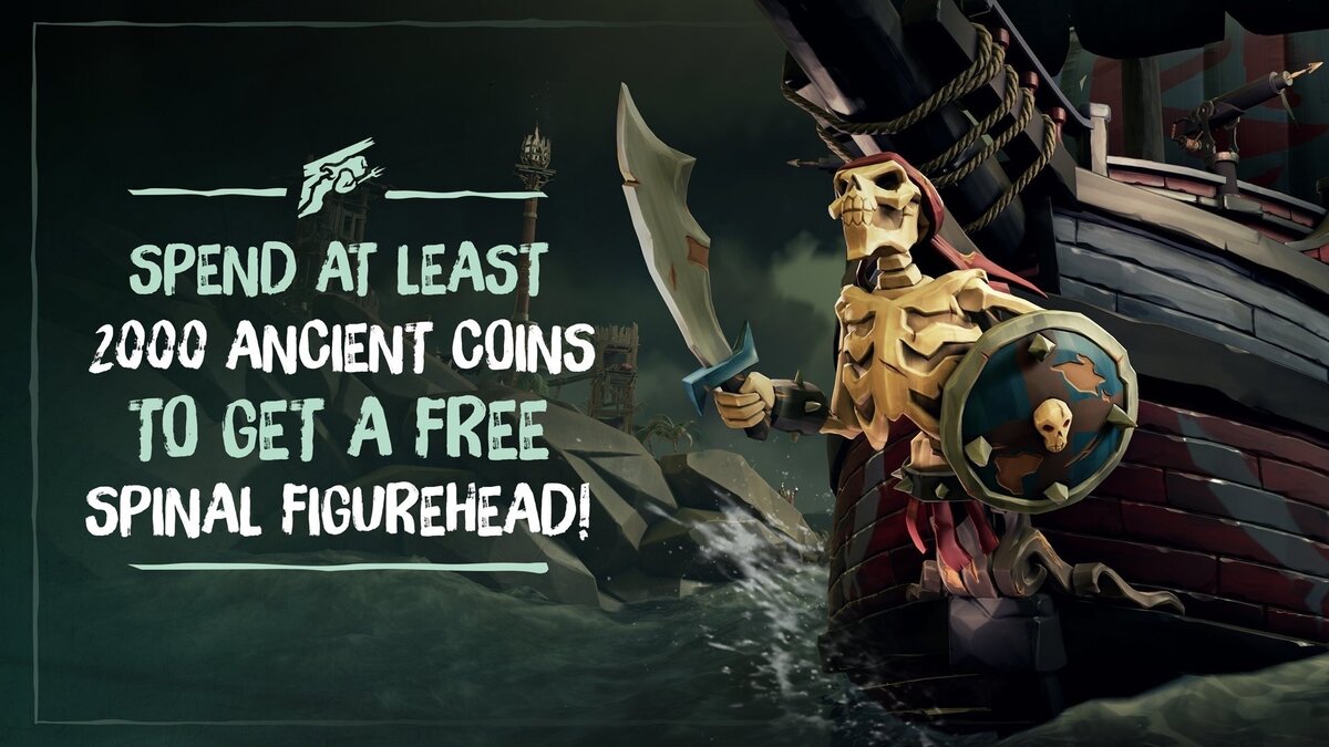 В качестве бонуса в Sea Of Thieves есть возможность получить носовую фигуру «Костяк». С 24го июня по 3е июля в игре нужно потратить 2.000 древних монет(Донат) чтобы получить фигуру.