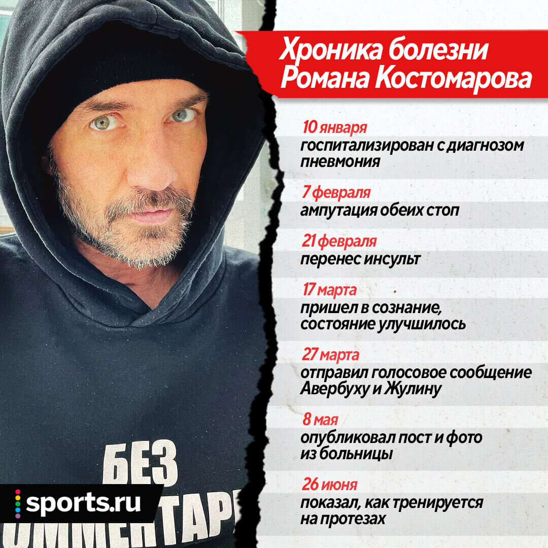 Роман Костомаров и правда идет на поправку – олимпийский чемпион опубликовал первое видео за полгода! И там он в порядке – возвращает тело в тонус. Вот это воля и сила духа! За новостями о Костомарове с января, пожалуй, следила вся страна. Если предельно коротко, так развивались события: от крайне тяжелого состояния до ободряющего ролика от самого Романа. Теперь же Костомаров занимается на велотренажере – уже с протезами на ногах. А в концовке короткого видео даже подмигивает в камеру. «Ох уж не просто это все... Ни морально, ни физически... Мягко говоря! Но едем дальше. 💪 Впереди самое сложное, сука-жизнь! Хотя она и не была простой», – написал Роман. За него порадовалась и Татьяна Тарасова: «Гений! Настоящий гений, сильный человек с мощнейшим характером. Желаю ему терпения и здоровья». Теперь Костомарова ждут длительное восстановление, тренировки и адаптация. Да, впереди самое сложное, но самое страшное точно позади. Навка и Костомаров вошли в историю этим номером: цыганка-блондинка