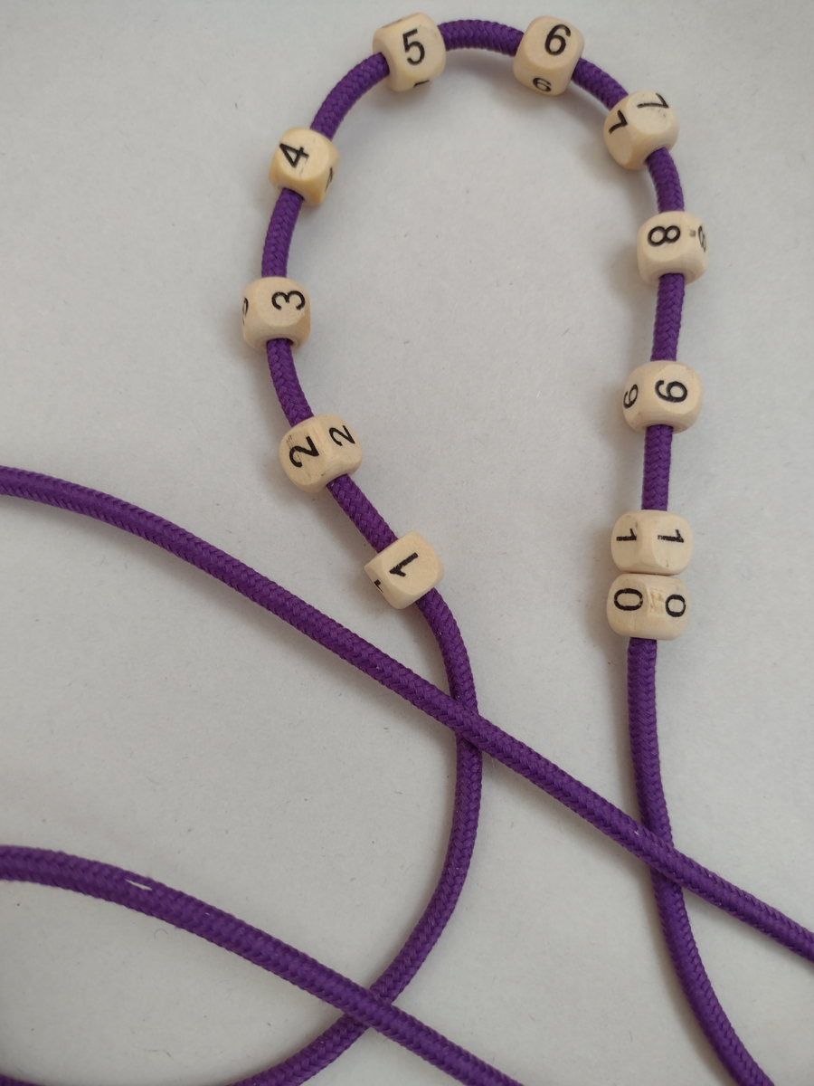 Далее определяем серединку нитки. В данном примере несложно увидеть, что серединка будет находиться между числами 5 и 6 (5 шариков до серединки и 5 после) (рисунок 2).