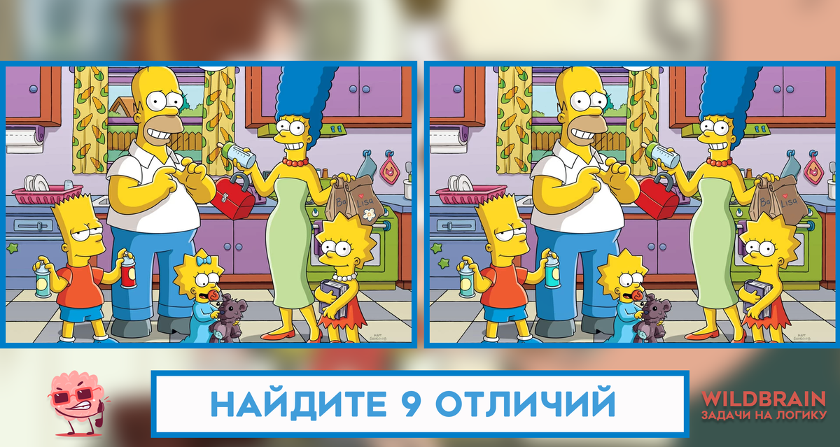 Продолжаем развивать вашу внимательность. В этом случае предоставлены картинки по мультсериалу "Симпсоны"