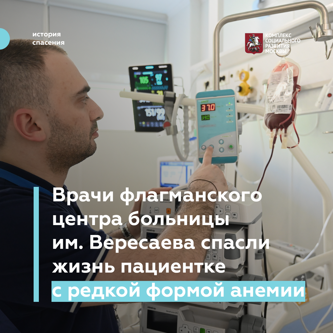 В больницу им. В.В. Вересаева в критическом состоянии госпитализировали 62-летнюю женщину с тяжелой редкой формой анемии. Чрезвычайно низкая концентрация гемоглобина в крови женщины – 53 г/л при норме 115-135 г/л – ставила её жизнь под угрозу.
